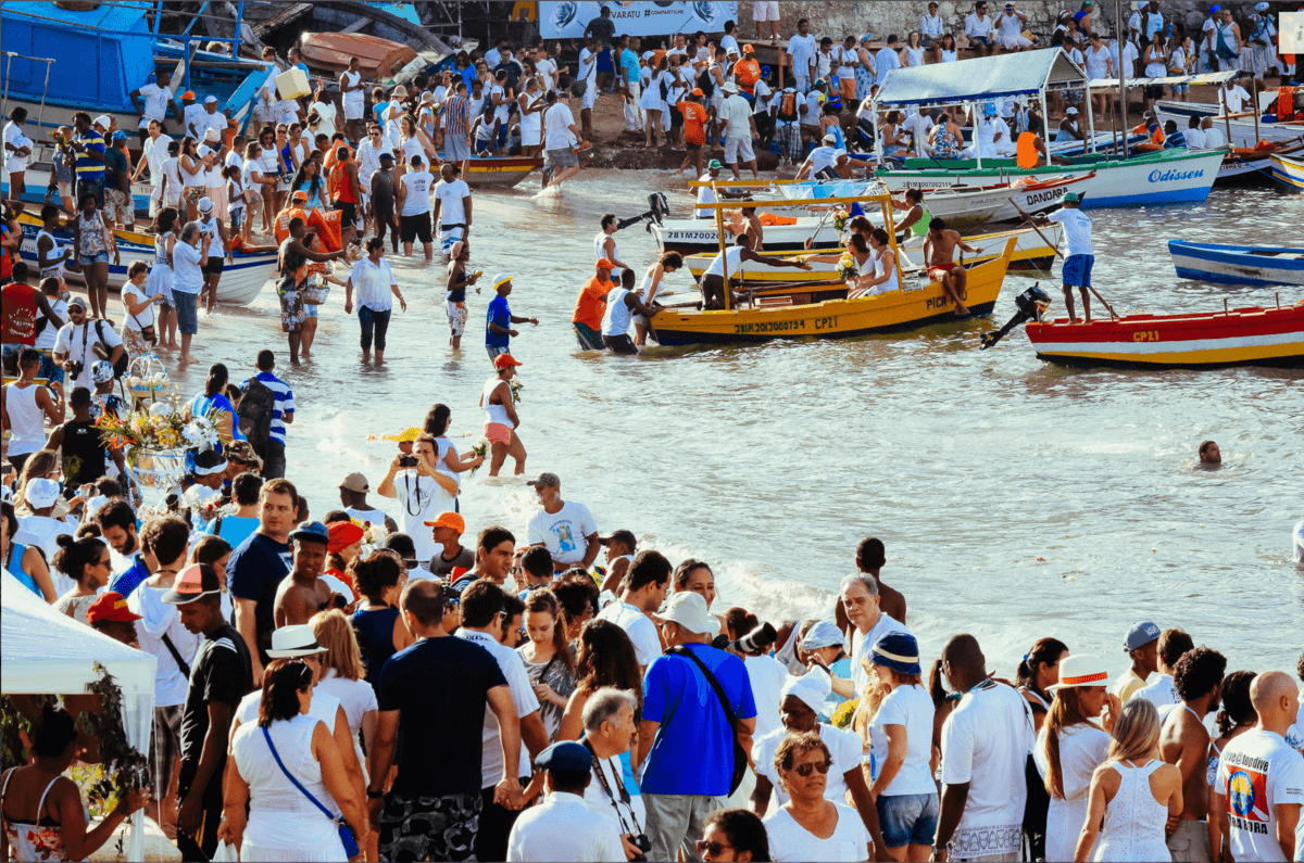 Foi minha primeira viagem à Bahia (2014). Eu escolhi exclusivamente o dia 2 de fevereiro para poder passar o Dia de Iemanjá lá. Comentaram sobre as festividades desse dia e já na madrugada acordei, por volta das 3h, para me encaminhar até o bairro do Rio Vermelho, onde a celebração de Iemanjá é tradicionalíssima. As pessoas praticamente não dormem do dia 01 para o dia 02 e é uma verdadeira festa para saudar a rainha dos mares.